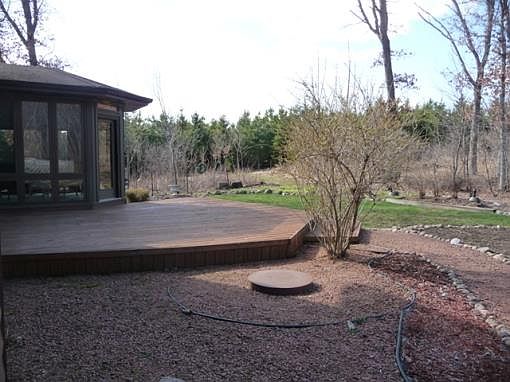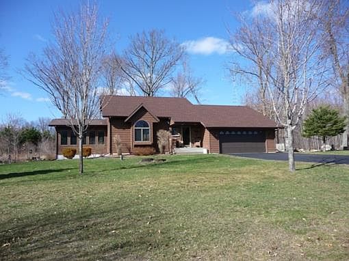 E1062 Haase Rd, Waupaca, WICountry home is on 10 acres where the pride of ownership shines! There is 2088 sq feet of beautifully maintained living space in this custom-built home. There are 3 bedrooms, 2 full baths, 3 season room, and bonus detached garage with concrete floor/drain. Interior special features include cathedral and vaulted ceilings, architectural detail, Corian cabinets, gas fireplace, bay windows, and more. Property is located just west of Waupaca with convenient access to Hwy 10. The yard is beautifully landscaped with fruit trees and pathways all located at the end of a long paved driveway for privacy. Nature views from every window for panoramic beauty.