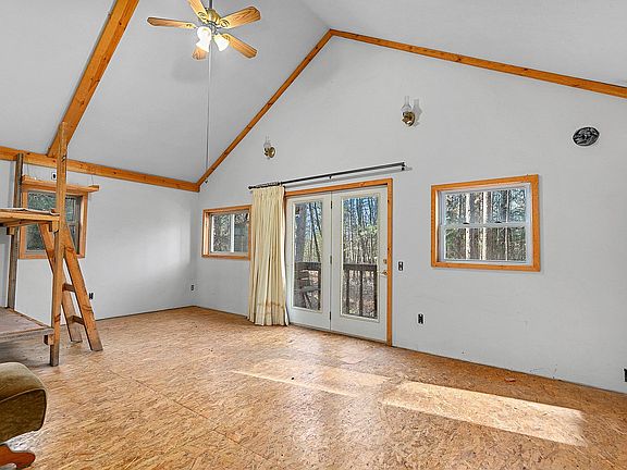 Split-level, partially-finished home snuggled into 6 acres of woods is ready to become your dream home. From the extra-deep attached garage, go down a few stairs to a living room graced by a soaring ceiling. The kitchen and a full bath are also on this level. Up a stairway flanked by a wood railing created from trees on the lot is a loft area with a patio door to 1 of 2 decks. Up a few more stairs is an area housing space framed for a bedroom, bath, and living area leading to a 2nd deck. Sink, cabinet and toilet are still boxed and ready for install. Other unfinished spaces include a 12x7 mud room and 21x5 entry. Only heat is by wood stove. So much opportunity in such a beaufiful location. Zoned Rural Residential. Being sold as-is. Assessor lists 2682 sq ft.