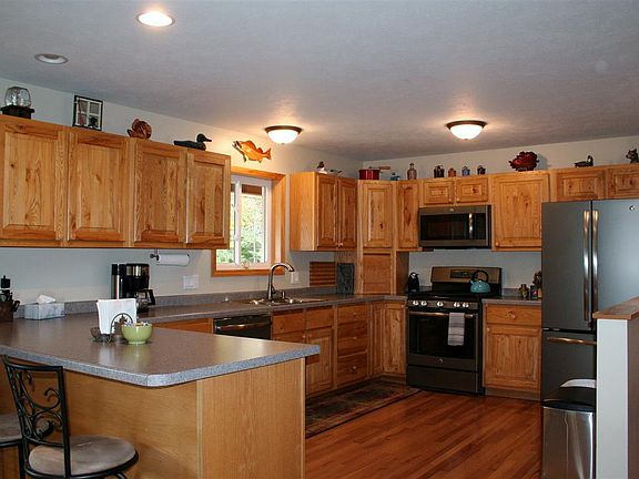 LOOKING FOR A PRIVATE SETTING...this is it with this home on 40 acres of mixed hardwoods. Secluded setting on a dead end road with trails throughout and adjoins CFR land. 4BR, 2BA featuring hickory cabinets/floors and updated slate appliances. Open living space with a view from every direction. Sliding doors off dining area lead to a full length front porch. Large deck off the back is a great place to unwind. Nice master bedroom & bath. Central air was added in 2011. Partially finished basement with insulated floor includes 4th bedroom, laundry, family room area and an area for a 3rd bathroom. 36x78 heated garage which 30x36 was added in 2019. Has 3 man doors and 10'9x10 & 10'9x16 doors. Workshop portion of garage is 17x36 with heat & AC. 8x12 storage building with electricity & gravel drive.