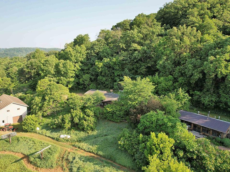 A 40+/- acre hidden Driftless region gem is one way to describe this Vernon county property located between La Farge and Viola. Privacy, solitude and amazing views are some of the qualities unique to this well planned south facing one level 3 bedroom 2 bath bermed home with adjacent stunning well appointed large summer kitchen with root cellar. Just below the home is an equally impressive drive through shop building with roll up doors and a spacious overhead studio/office space. Another main feature is the relocated historic log home resting on a poured concrete full basement. Below the buildings lies an expansive open grass meadow which is certifiable organic. Old growth forested ridge with trail overlooks the Kickapoo valley.