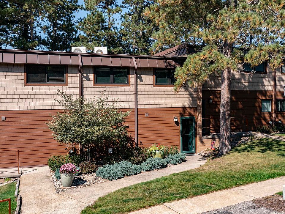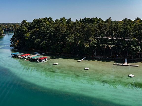 Dream location on the Waupaca Chain O’ Lakes! Renovated Wingspan condo in coveted “Ravenswood,” facing Round Lake with breathtaking sunset views from an extra-large living room and primary bedroom. Carefree living meets hard-sand frontage with 1,200± ft of shoreline on 17 acres, shared by only 18 units, with your own dock space and boat slip. Inside: Open concept, spacious 1,800+ sq ft, oversized windows and patio doors, and a beautifully updated wood-burning fireplace. Step onto a maintenance-free patio for your golden-hour dinners! Tennis & pickleball courts, wide green space, and easy walks to the Wheelhouse & ICC. The association covers grounds & exterior (new roof), so weekends stay free for year-round lake life. Turn-key, lock-and-leave convenience in the heart of the Chain O’ Lakes!