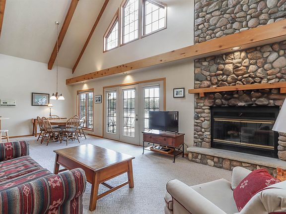 Stone fireplaceLarge dockLakeside screen porchLevel yardCozy fireplaceOpen layoutTons of natural light