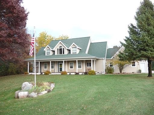 E1412 Dayton Rd, Waupaca, WISecluded estate home is nestled on 18 acres with pond at the end of a long private driveway. The Radley Creek meanders by the north edge of the property for a perfect country setting for horse lovers. The home offers 3500+ sq ft of living space with open-concept design featuring 4 spacious bedrooms, 3.5 baths, bonus room over garage, main floor theater room, hardwood floors, and 2-story field stone fireplace. The large eat-in kitchen has hickory cabinetry and new appliances. Attached 3+ car garage has access to the full basement with daylight windows. Enjoy a covered front porch and deck for views over the fenced pasture for grazing horses and woods for hunting. There is a pole building & horse stables for equestrian appeal.