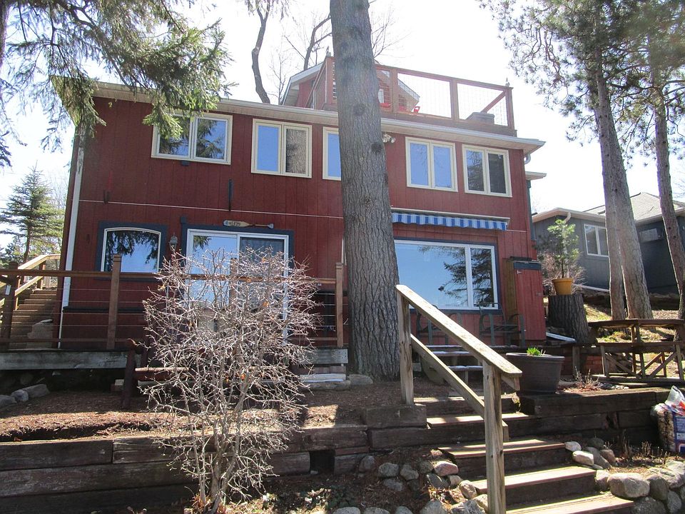 Here is the cottage on the Chain you have been waiting for to come on the market. Beautiful 50 feet of hard sand frontage. Pier and swim dock included. This cottage sits very close to the water for a spectacular view. This is cozy and easy to maintain. New roof in September of 2022, new drilled well in 2022. Owner has taken pride in the landscaping. Breathtaking sunsets in your view. Sun awning included. Room sizes may not be accurate do to irregular shaped rooms. Lots of built in storage areas.