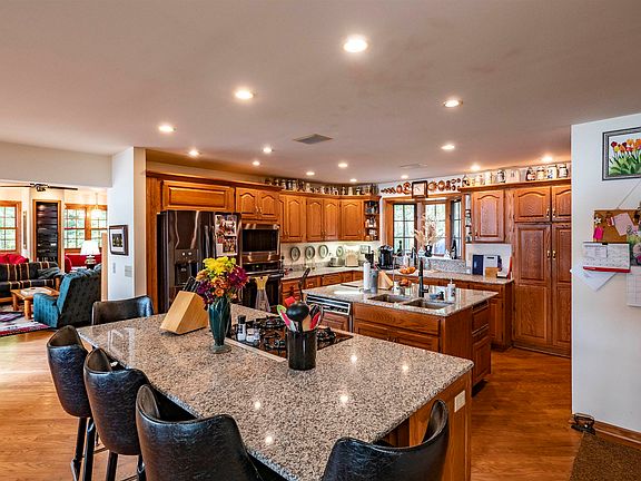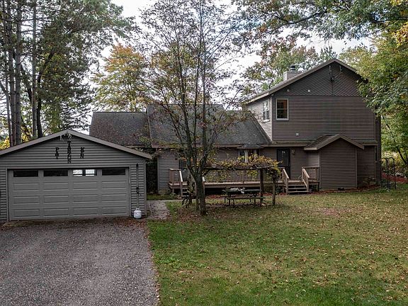 Escape to this inviting Graham Lake home with frontage and a dock on peaceful Leer Creek. Nestled on 7+ acres at the end of a quiet cul-de-sac, it’s the perfect blend of privacy and comfort. The spacious primary suite offers its own deck, a cozy sitting/closet area, and water views from every window. A large formal living room with wood-burning fireplace is ideal for gatherings, while the bright kitchen with two islands makes cooking and entertaining easy. Step outside to the expansive deck with hot tub and enjoy the surrounding natural beauty. With laundry on both main and lower levels, everyday living is a breeze. Don't miss the outside "bath house" after your dip in the lake! This home offers room to spread out, relax, and create lasting memories—a true retreat on the water.