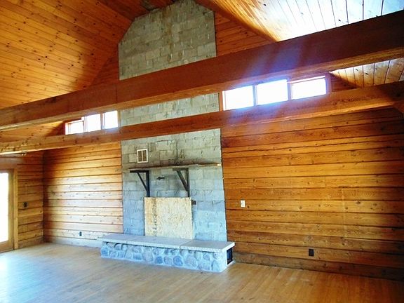 Have you been dreaming about a log cabin on a few acres of land? Do you see yourself sitting on the covered front porch sipping some lemonade? Here is the home for you. Inside are 2 main floor bedrooms with the third bedroom being a loft. There is a main floor laundry/mud room right off the side door which works great for kicking off shoes, boots, coats etc before entering the main area of the house.There are two fireplaces, one on the main floor and one in the basement just waiting for decorative eye to finish them off. Home features the vaulted wood ceilings, patio doors off the dining area that open to the back yard. The basement is unfinished and partially plumbed for the second bathroom. Oh last but not least there is a 4 stall detached garage with a lot of storage space in the upper part of the garage. Large garage door for bigger vehicles or campers. This property also comes with 3.66 MOL acres.