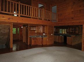 Great views from this full log home sits on eight wooded acres full of wild life. First floor master suite with walk-in closet and large master bath. Spacious living room with large two story field stone fireplace. Beautiful kitchen with cherry hardwood floor and cabinets overlooking the living room.Sit on the big deck and enjoy the outdoor fireplace. Full unfinished walkout basement. A must see!