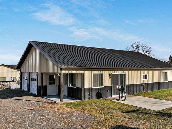 Easy access to I-94 from this 5060sq.ft building located just east of Knapp, WI. 16 ft sidewalls, 14.3 x 14 doors, 1 bath with shower and a 1/2 bath. Office area too! Attached to the building is living quarters with 2 bed, 2 baths with 1920 sq.ft patio. Also included is a separate home with 2 bed, 1 bath, 12x15 patio has 1152 sq.ft with an attached heated/insulated 2 car garage 24x24. There is also a utility shed 12x20 insulated, heated, electrical with an additional 10x20 off to the side. Property zoned GC-General Commercial. Property was used as a Trucking Company. Property could be used for warehouse, office/mfg., retail/ warehouse/ auto repair and sales, cartage, and freight company.