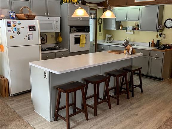 A true retreat away from it all! You will be swept away when you look out your windows and see water from almost all directions, a stretching lawn just past the wrap around deck, wooded privacy on all sides and last but not least you listen and hear nothing but peace and quiet! This three bedroom charmer has been meticulously maintained and updated with a convenient open concept layout, large living room with wood burning fireplace, kitchen with comfy island seating and patio doors off the dining area. Outside there's tons of room for your toys and tools in the two sheds!