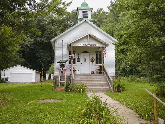 Welcome to the Riverview School. Built in 1914 by local Norwegians this historic BEAUTY was the third School building in this area & held classes until 1960. Looking for a spot to escape the hustle and bustle or to continue running the successful vacation rental - this is the spot for you. Situated on 1.3+ Acres of private + wooded land with a detached 2+car garage, back & front porch - you will love the peace & quiet you find here! This property has been lovingly restored back to its original charm with major updates including: gutted down to the studs, new wainscoting, updated electrical, new plumbing, newly insulated, new bathroom, new well pump and casing, new riser & lid on septic, new water heater, new exterior windows, new driveway, furnace (2017). Family room has concrete floor.