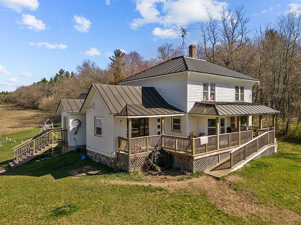 Peace and privacy surround this 1900s Farmhouse on a dead end road! Large Kitchen and attached dining area with built-in bookcase! ENORMOUS living room plumbed for a wood stove and original flooring! Main floor bedroom and laundry! Full bath on the main awaiting your finishing touches. 3 additional large bedrooms upstairs with full bath! Large detached 22x80 garage/shed and additional 48'x32' Lean-to! All of the major items have been updated including: Conventional Septic, New METAL Roof, window replacements and newer furnace!