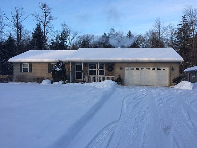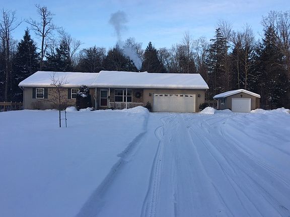Fantastic ranch on 2.29 acres. Features include a nice main floor master bedroom with full master bath. 2 additional main floor bedrooms and another full bath. Large living area with wood burning stove and kitchen with patio doors leading out to a backyard deck. The lower level is finished. A large family room with gas fireplace, daylight window and a large bedroom with another full bath. An additional bonus room on the lower level would make an excellent office.The home sits on 2.29 acres of mostly wooded land. Very private yet only minutes from town. A two car attached garage and an additional 1 car detached garage is present. The yard is well landscaped with perennial flower beds and a nice backyard patio. Conveniently located and priced to sell.