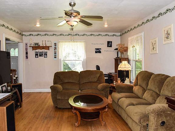 Charming home on 2.69 acres! 3BD, 1.5BA with hardwood floors through out living room, dining room, and bedrooms. Newly added backsplash in kitchen. Living room with built in bookcases, and family room with pellet stove. Spacious Master bedroom with double closets. Newly updated railing above garage for extra space to entertain. Large mudroom off of attached garage. Property also has detached garage and storage shed.