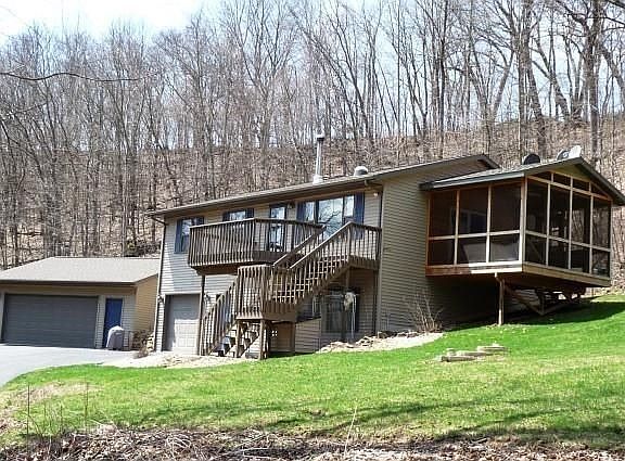 Country living with wooded seclusion! Well maintained 3-bedroom home surrounded by mature woods that offers an excellent floor plan including updated kitchen with Corian counters & sink plus stainless appliances. Enjoy country views of the abundant perennials & wildlife from the 12x14 screened-in porch. Updated re-paved driveway, newer A/C & a wood burning stove. Huge BONUS-spacious 24x26 detached garage for storing your toys, or convert part of the garage into a workshop.