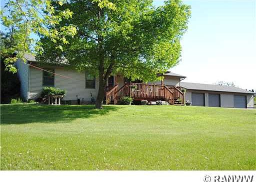 Beautiful 4BR/3BA Ranch on 5 Acres with 55x25 Heated Shop! Oak Kitchen w/ Hickory Floors, Stainless Steel Appliances, Dbl Oven, Counter Seating, Huge Main Floor Laundry/Pantry, Master Suite w/ Private Bath, Full Finished Basement, Andersen Windows! New Roof 2014! FA/Central Air, Walking Trails, 20x10 Shed, Woods! Asphalt Driveway, Close to Town! Scenic Setting! 4 Car Det Garage, Large Covered Deck! Must see!