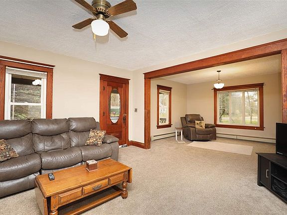 Spacious and cozy home conveniently located off of Hwy 10 just outside of Waupaca on 1.5 +/- acres! Large eat-in kitchen complete with center island, abundance of cabinets and gorgeous built-ins adds beautiful detail. Enjoy the open family and great rooms off of the kitchen for gatherings and a place to relax. Well maintained wood floors upstairs are a bonus to this 4 bedroom, 2 bath home. Outside offers a covered porch, huge garage/shed for toys and projects and recently built chicken coop and more. Must see!