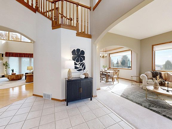 One of Eau Claire’s finest has just hit the market! This stunning custom-built home showcases exquisite detail from the elegant foyer to the main floor office, formal sitting area, and formal dining room. The spacious living area features a stylish wall bar, while the kitchen’s dining nook overlooks a private backyard oasis (with additional optional acreage available). The main floor master suite is a true retreat with a soaker tub, tray vaulted ceiling, and walk-in closets. An oversized three-car garage adds convenience, and the fully finished lower level is designed for entertaining large families, complete with a full bar and walkout access to the outdoors. Spend your evenings by the inviting firepit area — this home exudes class and has been impeccably maintained, making it a rare find in Eau Claire!