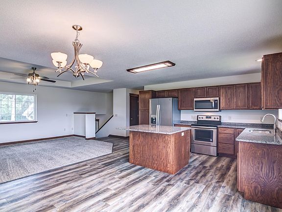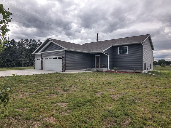 Beautiful 4 Bedroom / 3 Bathroom NEW spec home in the Cedar Falls / North Menomonie area! Very convenient location near to I-94 for the commuter, near to Tainter Lake for fun boating and fishing, and cable internet is available for your home office needs! You will love the granite counters and large island in the kitchen, precise finishing / trim work, very open KT/DR/LR in the upstairs, large bedroom sizes, incredible master w/double vanity, walk in shower and large master closet, big lookout windows in the lower level, and spacious family room to entertain! You can build extra garage if desired as it includes a 2.03 acre lot! Come take a look! Temporary garage door on while we wait for Permanent garage door to come off back order.