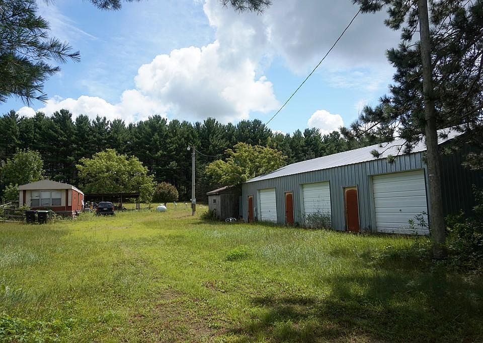 Trailer home on nice level 3 acres parcel in the township of Red Cedar. Large 30x55 pole garage. Excellent lot with seclusion, privacy, and beautiful setting. Home can be fixed up or use the parcel and large pole shed to start a new. Property being sold as-is.