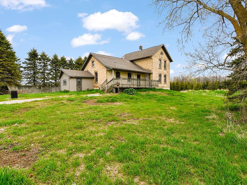 A 20-acre farmette located in idyllic country setting within a short distance to Green Bay, Algoma, and Door County. This property has TONS of opportunities to fulfill your needs and your dreams. The interior of the home is in poor condition and needs renovation but has newer roof, windows, and boiler. Septic installed 2016 per professional. The 90x25 barn/granary has original, gorgeous woodwork and includes a loft. Don't forget the 4000 sqft pole building with 2 new sliding doors and endless opportunities for storage. Heat=hot water. You won't want to miss this opportunity to enjoy the country setting with sunset views from the front porch! Seller is selling property “as-is” as part of an estate sale with no warranties or representations.