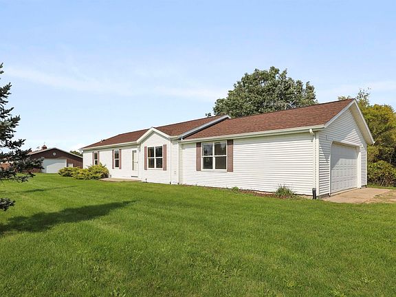 Wildlife Abounds! With 23+/- Acres including approx 3000+/- ft (Per Seller) of Waupaca River frontage, the opportunities are endless! Hobby Farm Potential! 3 BD, 2.5 BA modular ranch offers a sizable kitchen with dining, living room, sunken family room, master suite with full bath, main level laundry, and front mud room. Garage was converted to additional living space. Lower level is plumbed for a full bath. Heated 36X60 detached garage/pole shed, 42X120 Pole Shed with available water hookup. Waupaca River connects to Wolf River. Public Landing just down the road. Peaceful Serenity!