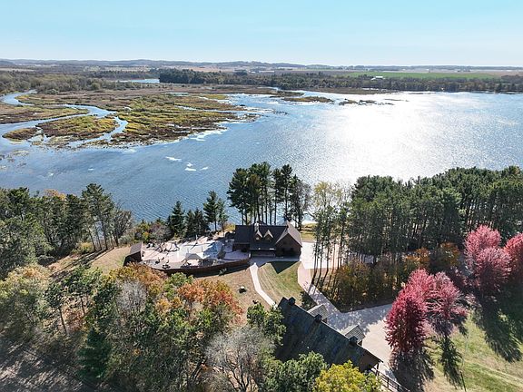 INCREDIBLE Upper Tainter (6) BR fully furnished log home on a private 7.15-acre campus w/778 ft. of water frontage! The home features vaulted ceilings, stone fireplace, pine flooring, sauna, absolutely stunning lake views & a gorgeous in ground salt water pool (w/new cover, liner, heater) & beautifully landscaped deck terrace. Huge 32’ x 60’ htd 6 car detached garage w/half bath & newly finished living quarters upstairs w/ new expansive deck, another new 48’ x 56’ pole shed w/concrete & electric & a 26’ x 36’ detached 2 car --- so PLENTY of storage room for toys & vehicles. New concrete driveway w/gated entrance! Smart home security system inc for entire campus where all bldgs are tied into same network controlled by one easy app! Wonderful stone fire pit area overlooking the lake! Nice stairs leading to water’s edge w/new waterfront decking. Docks included. METICULOUS & only 60 minutes from the east metro. Long list of updates attached! Buyers must be preapproved. Move right in! This property is located right across the bay from Tainter's largest sandbar where people go to hang out, swim, and have a few cocktails. Very fun spot! Tainter Lake also has two restaurants located on the lake that you can enjoy dinner by boat! Truly special property and a MUST SEE!