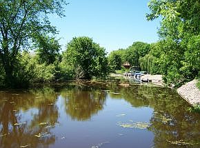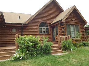E7491 Red Oak Rd, On the Wolf River, Fremont, WIWilderness Log Home is located on the channel in Fremont on the Wolf River. Boat the Wolf for miles in any direction from this great location or boat to Fremont for outdoor dining, fishing, to see a water ski show, or to meet with friends at one of many public landings. This beautiful log home is on nearly 1 acre for a lovely setting along landscaped waterfront with perennial gardens to the riverfront and private dock. Home has 2-story stone fireplace, beamed ceiling, solid 6-panel doors, open staircase, cathedral ceilings, office/den off back of garage, covered porch, large 3-season sunroom, deck facing the water, and more. Layout provides for main floor laundry, 1 upper and 2 main floor bedrooms, plus full basement.
