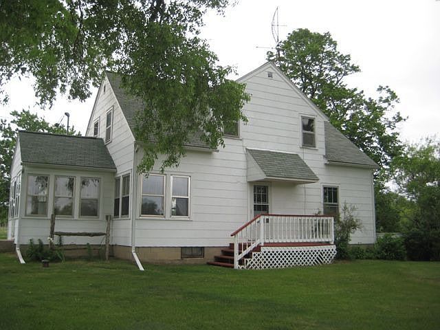 Approx 1.7 acre home w/ 4-5 bdrms. Entering the home is a bright sitting room w/new carpet, kitchen/dining combo, along w/nice size living rm & main floor laundry.You will find nice wood floors thru-out. 2 bdrms on main level & 2-3 on upper level. Upstairs offers a small kitchen off one room w/ door leading to outside. The main floor of home has been freshly painted. Laundry & bath have new vinyl flooring. Nice country setting & short distance to town.