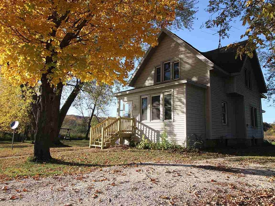 Quiet living in Black Hawk (Town of Troy). Sitting on just short of an acre, this 4 bedroom, 1 bath home is ready for new owners. This beauty has had many updates over the years including well, pressure tank, roof, siding, furnace, water heater, water softener, windows, and kitchen. Don't overlook the original woodwork, hardwood floors, pocket doors, built-in hutch in the dining room, gorgeous cabinets in the stairway, and 9 ft. ceilings. 2 car garage with extra space and electricity is also located just behind the house. Main floor bedroom currently has laundry hookups in it, but could be transitioned back into a bedroom.