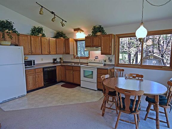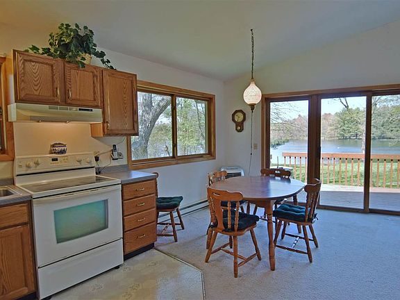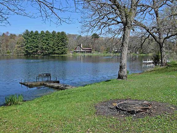 Affordable waterfront living is yours in this inviting two bedroom home at Lake Virginia w/approximately 150' of shoreline???go fishing right from home! An open floorplan offers an efficient kitchen and dinette, spacious living room w/woodstove that can heat the whole house! Patio doors lead you to the lakefront/lakeview deck! Convenient laundry facilities too. Over-sized garage so you have room for cars, bikes, garden equipment & more! Woodlands for the wildlife! Relax on the deck and enjoy the evening sunsets...life is good! (Available w/one lot- $169,900 See MLS#1857780) Waterfront total is approximate.