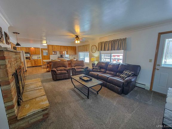 While many listings boast a great location this short-term rental home would make that gesture an understatement. So many attracting features apply here including walking distances to the casino and steakhouse/bar restaurant, gas station/convenience store and you're only 300 yards as the crow flies from the shores of beautiful Lake Superior. This 3 bedroom/2 bath home rests right on the side of M-28 and has been owned by one family. The house and property have been well maintained and several recent updated areas simply demonstrate that. It's a turnkey rental, fully furnished if requested and ready for business! The first floor alone has 2100'+ of open concept area including family, dining and living room not to mention the spacious kitchen. Add another 1860' in the basement with a bar and very large recreation and utility rooms to provide all the roomy comfort you desire. Icing on the cake are the two fireplaces on both floors as well. Easy access to the outside is also a specialty to note. The outside has a deck and a 10x14 sauna for more relaxation. Property size is 1.87 acres that surrounded by Hiawatha National Forest property and Bay Furnace campground. Having everything you need so near by....last but not least is Trail 419 just across M-28 that will lead your snowmobile or ORV anywhere you intend to enjoy them. Set yourself in a great location business opportunity with a very fine home that brings endless possibilities!