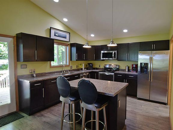 Get out of town and still be part of a neighborhood! Excellent location adjacent to Lake Virginia w/easy access to Hwy 33 making your commute a breeze. Newly updated kitchen w/a snack bar & dinette area that opens to the large living room offering a vaulted ceiling & room for family & friends to enjoy their down time with one another. Wood laminate flooring throughout for easy care & clean up! Main level master bedroom & bath PLUS an add'l master suite in the lower level...pick which one you want to claim as yours! Lower level recreation/family room for fun & games with access to the gorgeous backyard that will be your own piece of heaven with natural & easy care landscape...including a pond! Outdoor gatherings are easy here! Attached garage. Plenty of storage too! Take a LOOK today!
