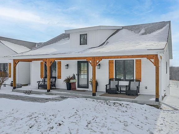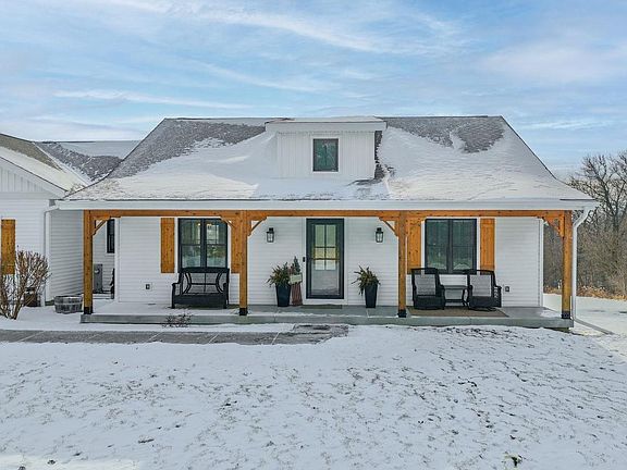 Absolutely beautiful views! This meticulously cared for ranch in the country sits on 6+ acres. Great room w/vaulted ceiling, gas FP, convenient kitchen with darling pantry w/wine fridge, mud room off garage, main floor laundry w/ cabinets and sink w/ counter. Primary bdrm features a picture window with expansive views of the countryside, bath with walk-in shower, and large walk-in closet. 2 generous sized bdrms and 2nd bathroom complete the upper level. Off the great room you'll enjoy time on the deck that looks out to the bluffs with steps down to the covered patio. Lower level has 1600 sqft of ready to finish space for whatever suits your fancy including sets for another bath, plus a walkout to the patio for ease of use. You will not regret seeing this stunning property and it won't last