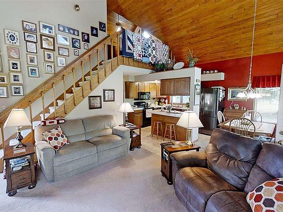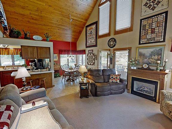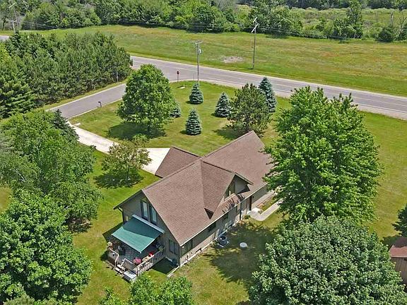 You won't want to miss out on this spacious, 3 bedroom, 2 bath home with a 2-car attached garage on a beautiful 4.94 acre lot! Open concept living with a main floor bedroom, laundry, and a gas fireplace in the living room which leads to more outside space on the deck. Storage is no issue here, there is a full unfinished basement. Many updates have been done in 2019 including the roof, A/C, and repainting of the cedar siding.