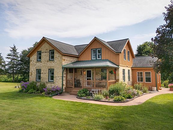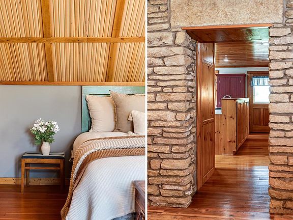 Straight out of a storybook, this lovingly rebuilt home on 2.30 private acres is where rustic charm meets peaceful beauty. Thoughtfully renovated, it blends modern updates with timeless details, exposed stone walls, a vaulted ceiling with wooden beams, and a sun-drenched living room with a cozy gas fireplace. Wake up to breathtaking views from every room, enjoy coffee on one of two decks, or stroll your land dotted with maple and apple trees, grapevines, a barn with heat and electricity, and three additional outbuildings. Located in the Sauk Prairie School District and just 10 minutes from town, this retreat invites you to slow down, unwind, and let the possibilities unfold.