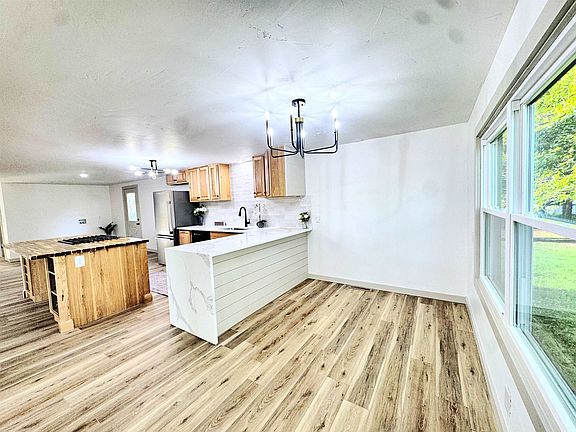 Virtually new open concept 3 bedroom 2 full bath country ranch on a full acre lot with high end finishes throughout. Kitchen features hickory cabinets, butcher block island, quartz countertops with waterfall peninsula, tiled backsplash and stainless steel appliance package. New thermal vinyl energy efficient windows and commercial grade flooring throughout. Both bathrooms feature tiled showers and double vanities. Primary bedroom features walk in closet and ensuite bath. Main floor laundry. New high efficiency furnace and central air with warranty. All new ductwork. New electric service and main panel. New well pump, pressure switch and valves. Every detail has been updated. This is the one you have been waiting for to call home!