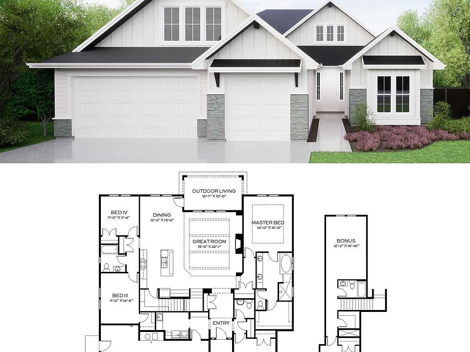 TO BE BUILT — Riviera with Bonus by Tresidio Homes in Valnova, Eagle! This beautifully designed home offers a thoughtful blend of functionality and style with a spacious open-concept great room, soaring ceilings, and abundant natural light. The gourmet kitchen features quartz countertops, custom cabinetry, stainless steel appliances, and a large island—perfect for entertaining. The main-level primary suite provides a private retreat with a spa-inspired bath including dual vanities, a tiled walk-in shower, and a generous walk-in closet. Additional main-level bedrooms offer flexibility for guests or home office needs, while the upstairs bonus room creates the perfect space for a media room, playroom, or hobby area with additional fifth bedroom. Located in the highly desirable Valnova community in Eagle, residents enjoy scenic surroundings, walking paths, parks, and convenient access to downtown Eagle, the Boise River, and top-rated schools. Build your dream home with Tresidio Homes and personalize your finishes to make it truly yours. PHOTOS SIMLIAR, NOT OF ACTUAL HOME
