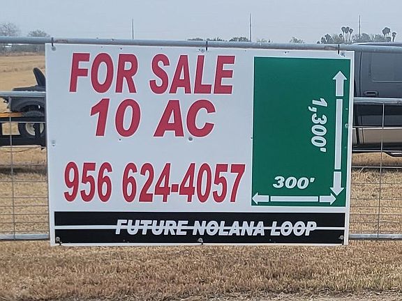 For Sale by Owner: REDUCED!! asking $550,000 These 10 acres with irrigation are currently used for hay Baling. This is a PRIME Location for Residential or Commercial development. They are located North Alamo Texas 1/2 mile east of Tower Rd. On Earling Rd. In the near future Earling will be Nolana Loop which will connect with Texas Ave North Weslaco Texas. This will be a high traffic area with many development possibilities. Dont miss out on this opportunity. If interested Call to make offer at 956 624 4057 or Text.