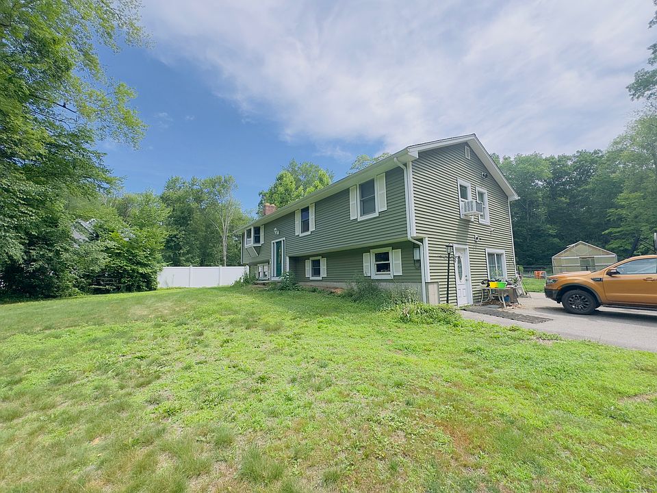 Welcome to 50 Eli Chapman Road-a peaceful retreat nestled on 2.62 private, level acres. Set back from the road, this inviting raised ranch has been lovingly maintained and updated, offering comfort and space both inside and out. The sun-filled main level features a cozy living room with fireplace and bay window, a dining area with sliders to a spacious Trex deck-perfect for relaxing or entertaining-and an updated kitchen with granite breakfast bar, pantry, and newer stainless steel appliances (excluding stove). Two bedrooms share a refreshed full bath, while the primary suite includes its own en suite bathroom. Downstairs, the partially finished lower level offers two flex rooms, a roughed-in bath, and a separate laundry/storage area-great for a home office, gym, or playroom. Outdoors, enjoy a new oversized shed, greenhouse, outdoor shower, and electric fence, with recently cleared trees opening up even more usable yard space. A detached 1-car garage and wide driveway offer plenty of parking.