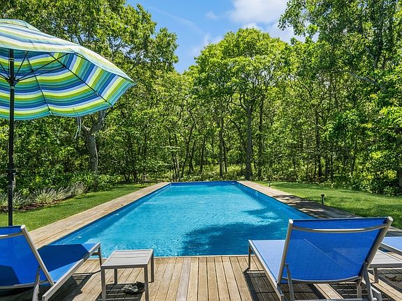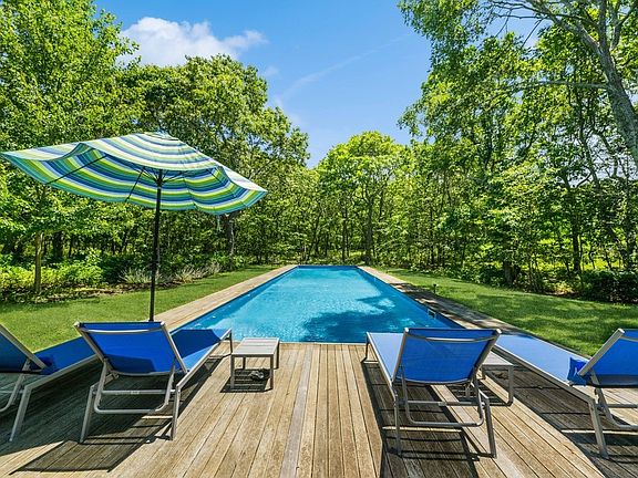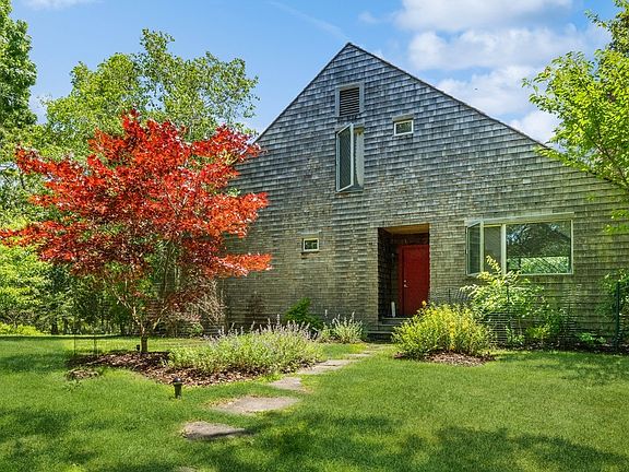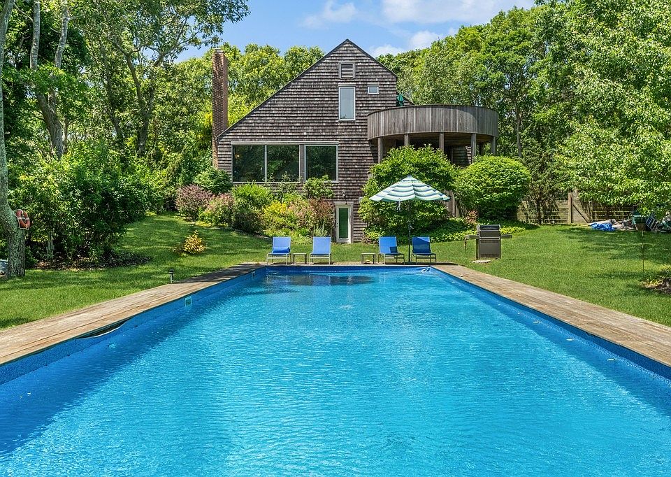 Secluded and private, nestled down a long drive, lies a beautiful contemporary home designed by the renowned architect Geoff Lynch. Enter through a charming storybook path to discover this extraordinary retreat, offering ultimate privacy. With custom windows framing the sprawling backyard like living artwork, the views of the stunning grounds and pool area are mesmerizing. Adjacent to an 18-acre nature reserve, this home offers a seamless blend of nature and bohemian vibes.The first floor features a primary en suite with direct access to a circular deck, a kitchen, and a dining area that bask in natural light throughout the day. The shaded circular deck is perfect for al fresco dining, providing a serene spot to enjoy the picturesque surroundings. Upstairs, you'll find two bedrooms and a full bath, with one bedroom opening onto a private circular deckideal for sunbathing, reading, or napping, all while taking in the scenic vistas of the property.The lower level boasts a finished recreation space and a full bathroom, with convenient access to the pool area and backyard. The grounds are beautifully landscaped and offer a 65-ft long pool, an outdoor shower, and year-round blooming flora, creating a private oasis for summer enjoyment.This unique home is perfect for summer retreat seekers looking to unwind and soak in the beauty of the Hamptons.