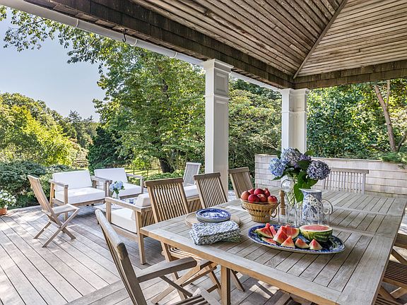 Three sublime and private acres in the heart of Georgica: Live in a summery dream in this timeless and classic East Hampton cottage in the tony south of the highway estate section of the village. This 5 BR, 4.5 BA traditional has a brand-new kitchen and primary bath and lovely indoor/outdoor flow, with multiple porches, decks and gathering spots. Freshly redecorated and perched on the top of Divinity Hill, the highest point in East Hampton village, this home captures ocean breezes in the summer or warms you with multiple wood burning fireplaces in the off-season. Less than 3/4 mile to Main Beach and 1.5 miles to the shops and restaurants in the village. Come see the essence of summer (or the off-season in the Hamptons) for yourself.