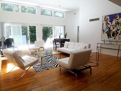 Expansive outdoor deckHigh ceilingTwo bathsCentral air-conditioningClerestory windowsDining areaThree bedrooms