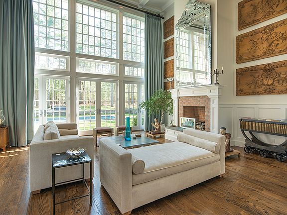 Three fireplacesBasketball courtGated entranceEight bedroomsManicured groundsEight and one-half baths