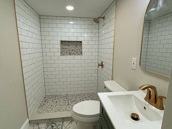 Beautiful full bathroom with custom tiled shower.