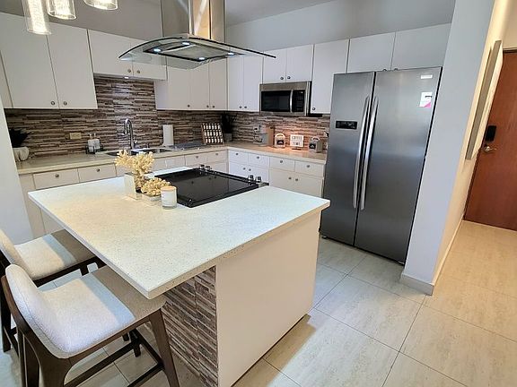 Apartamento totalmente amueblado en segundo piso Vista parcial al mar desde el balcón 3 espaciosas habitaciones, 2 baños espectaculares estilo hotel Cocina con tope de granito y todos los enseres incluidos Laundry con lavadora y secadora incluidos 1,559 Ft²