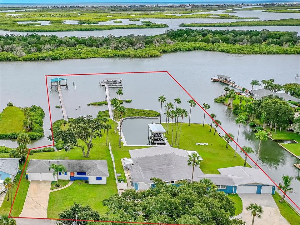 THIS OFFERING IS FOR 2-RIVERFRONT HOMES. TOTAL LAND MASS IS 1.36 ACRES WITH RIVERFONTAGE MORE THAN 600 FT. IN THE CITY OF EDGEWATER IT ALLOWS SHORT TERM RENTALS. LIVE IN ONE RENT THE OTHER OR CONNECT BOTH HOMES FOR A GREAT FAMILY COMPOUND. THIS DIRECT RIVERFRONT PARADISE IS BIG ENOUGH TO BE YOUR OWN MINI MARINA AND FAMILY RETREAT; LOTS OF RIVERFRONT DOCKAGE & A PRIVATE LAGOON. LOTS OF SEA WALL, PLENTY OF SPACE TO PARK BOATS, JET SKIS & EVEN YOUR FRIENDS BOATS. THREE HIGH END BOAT HOUSES AND THREE BOAT LIFTS. RIVERFRONT LIFT WILL HOLD 10,000LBS WITH A 35+FT BOAT. BOATHOUSE AND LIFT HAS TV HOOKUP, ELECTRIC, WATER & USB PORTS, MOOD LIGHTING, & LOTS OF SEATING FOR ENTERTAINING OR JUST WATCHING THE BEAUTIFUL SITES ON THE RIVER. THE LAGOON HAS AN UNCOVERD BOAT LIFT & A COVERED BOAT HOUSE AND LIFT. THE NEW STARCRAFT TRI TUNE PONTOON BOAT WITH 200 HP YAHAMA MOTOR COULD BE NEGOTIATED IN SALE. THE LARGER HOME IS BEAUTIFULLY DECORATED AND HAS A LARGE OPEN FLOOR PLAN & A MAJOR RENOVATION INCUDING CUSTOM KITCHEN, WITH LOTS OF STORAGE, QUARTZ COUNTER TOPS, & OVERSIZED KITCHEN ISLAND. TASTEFULLY DESIGNED WITH CROWN MOLDING AND CUSTOM DOORS AND WINDOWS. THE LARGE MAIN BEDROOM HAS EASY ACESS TO THE HOT TUB/JACUZZI ROOM. THE MAIN BEDROOM HAS CUSTOM BATHROOM WITH HIS & HER SINKS, TUB & SHOWER. THE THIRD BEDROOM COULD BE A MOTHER-IN-LAW SUITE AS IT HAS A SEPARATE ENTRANCE & ITS OWN ENSUITE. THE HOME HAS A VERY LARGE WORKSHOP WITH A DOOR OUT TO THE YARD, PLUS AN OVERSIZED 3-CAR GARAGE WITH CUSTOM BUILT IN STORAGE. THE 3-CAR GARAGE HAS GARAGE DOORS ON THE FRONT AND ONE GARAGE DOOR THAT LEADS TO THE RIVER. THERE IS A SEPARATE ADDITIONAL 1 CAR GARAGE WITH CUSTOM CABINETS FOR STORAGE & IT HAS ACCESS FROM THE LAUNDRY & A DOOR TO THE OUTSIDE. THE 65 FT GREAT ROOM HAS CUSTOM WINDOWS WITH GREAT RIVER AND LAGOON VIEWS. CUSTOM UP & DOWN SHADES GIVES YOU PRIVACY AS WELL AS ALLOWING SUNLIGHT IN OR OUT. ALL NEW CUSTOM WOOD FLOORING, TV AND ELECTRIC OUTLETS EVERYWHERE. FULL HOME GENERATOR, SPRINKLER SYSTEM, SECURITY CAMERA SYSTEM WITH 11 CAMERAS. ELECTRONIC DOUBLE GATE & STORAGE UNIT 35 X 20. THE SECOND HOME IS FRESH AND MORE THAN FUNCTIONAL. CUSTOM DESIGNED COUNTERTOPS HAVE BUILT-IN HIDDEN ELECTRIC & USB OUTLETS. LOTS OF SPECTACULAR DRAWER SPACE WITH INSERTS THAT WILL KEEP EVERYTHING ORGANIZED. SEE BEAUTIFUL VIEWS OF THE RIVER THROUGH THE LARGE CUSTOM-MADE HURRICANE RATED WINDOWS. THIS HOME HAS A LUXURIOUS STYLE THAT USES ORDERLY ELEMENTS TO CREATE BEAUTIFULLY PROPORTIONED SPACES FULL OF COLOR WITH A SENSE OF ENERGY & VIBRANCY. ALL NEW APPLIANCES, CUSTOM CEILING FANS, INSIDE LAUNDRY, LARGE TILED BATHROOMS WITH GLASS SHOWER ENCLOSURES & MANY MORE UPGRADES INCLUDING NEW INSULATION THAT DECREASES UTILITES AND A SPRINKLER SYSTEM ON A DEEP WATER WELL. THE OVERSIZED TWO CAR GARAGE IS A BONUS AND COULD BE CONVERTED TO A FAMILY ROOM, ADDITIONAL BEDROOM SPACE OR WORKSHOP PLUS GARAGE. THIS ONE-OF-A-KIND PROPERTY IS LOCATED IN A CUL-DE-SAC COMMUNITY WITH DEEDED ACCESS TO A BOAT LAUNCH. ;Water: City