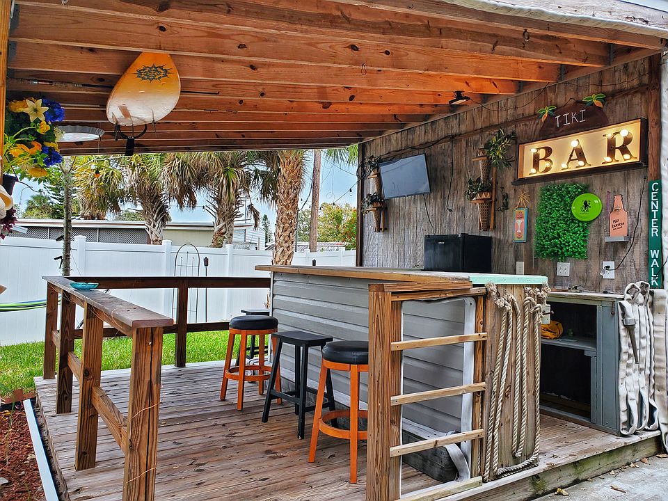 Coastal themed homeFenced in yardHeated poolsMultiple amazing lounging areasTiki barBoat ramp and dockScreened in patio