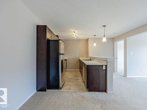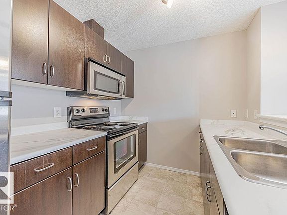 Welcome to Avenue at Hermitage. This 796 square foot 2 bedroom 2 bathroom condo features updated a galley kitchen with new laminate countertops, espresso cabinets, stainless steel appliances, and an eat-at peninsula. The primary bathroom has a walk-through closet to the four piece en-suite, and then across the living room is the second bedroom as well as the four piece main bathroom and laundry room. Close to Hermitage Park, and quick access to Victoria Trail as well as Yellowhead Trail.