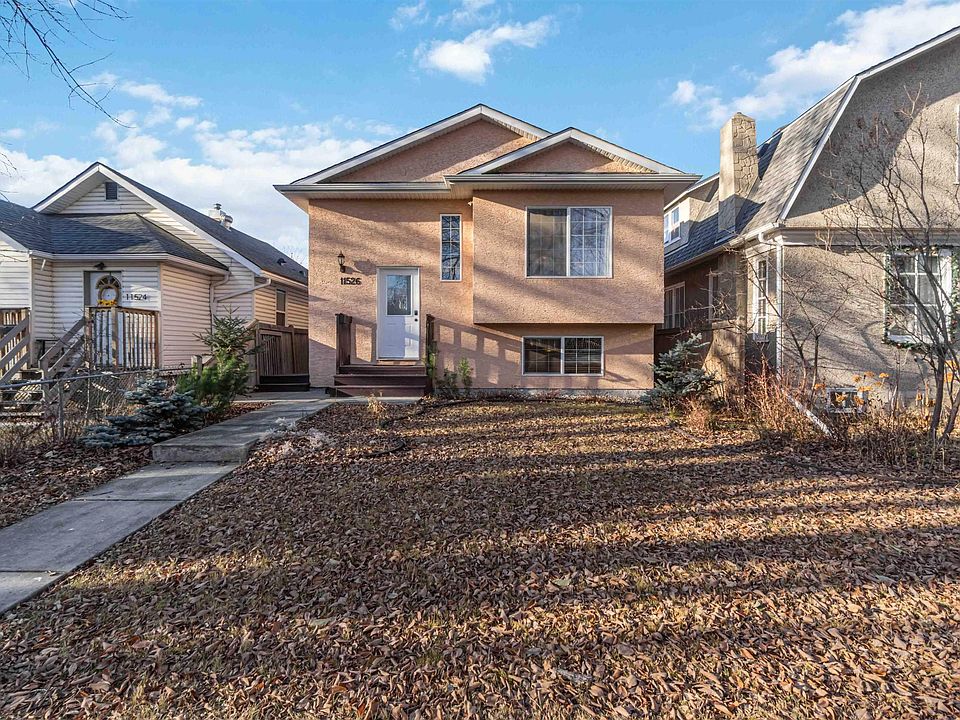 Welcome to 11526 87 Street – a charming bi-level home offering 2,367 sq ft of thoughtfully designed living space on a gorgeous tree-lined street in the family-friendly Parkdale neighborhood! This versatile property features 5 bedrooms, 3 full bathrooms, and a heated double garage with RV parking on an oversized lot. Step inside to discover elegant maple hardwood floors and sophisticated 9' California knockdown ceilings throughout – no carpet anywhere! The main level welcomes you with spacious living and dining areas enhanced by dramatic high vaulted ceilings. The grand kitchen showcases granite countertops and a chic glass tile backsplash, perfect for the home chef. Three generous bedrooms and 2 full bathrooms plus convenient laundry complete this level.The lower level features a separate entrance, nice sized kitchen with island and raised eating bar, expansive living room, 2 large bedrooms, full bathroom, laundry facilities, and abundant storage space.