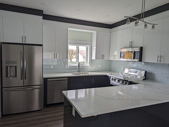 2 Bedrooms plus den, for rent in Glenwood , West Edmonton. House situated within a 4 Plex. Located in the highly desired neighbourhood of Glenwood. The 2 story home features a main floor with modern , open living, dining and kitchen, with half bath. Vinyl plank flooring throughout with exquisite cabinetry, soft close drawers/hinges, QUARTZ Countertops / backsplash & high end Stainless Steel Appliances. The 2nd floor consists of masters en suite bedroom, one other bedroom, a large den/ room and an additional 4pce washroom. A convenient laundry completes the upstairs. There is also a single detached garage with long driveway and beautiful landscape around the house .